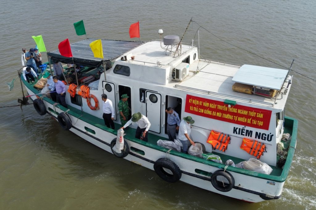 Chung Tay Thả Giống Thủy Sản Trên Sông Cổ Chiên